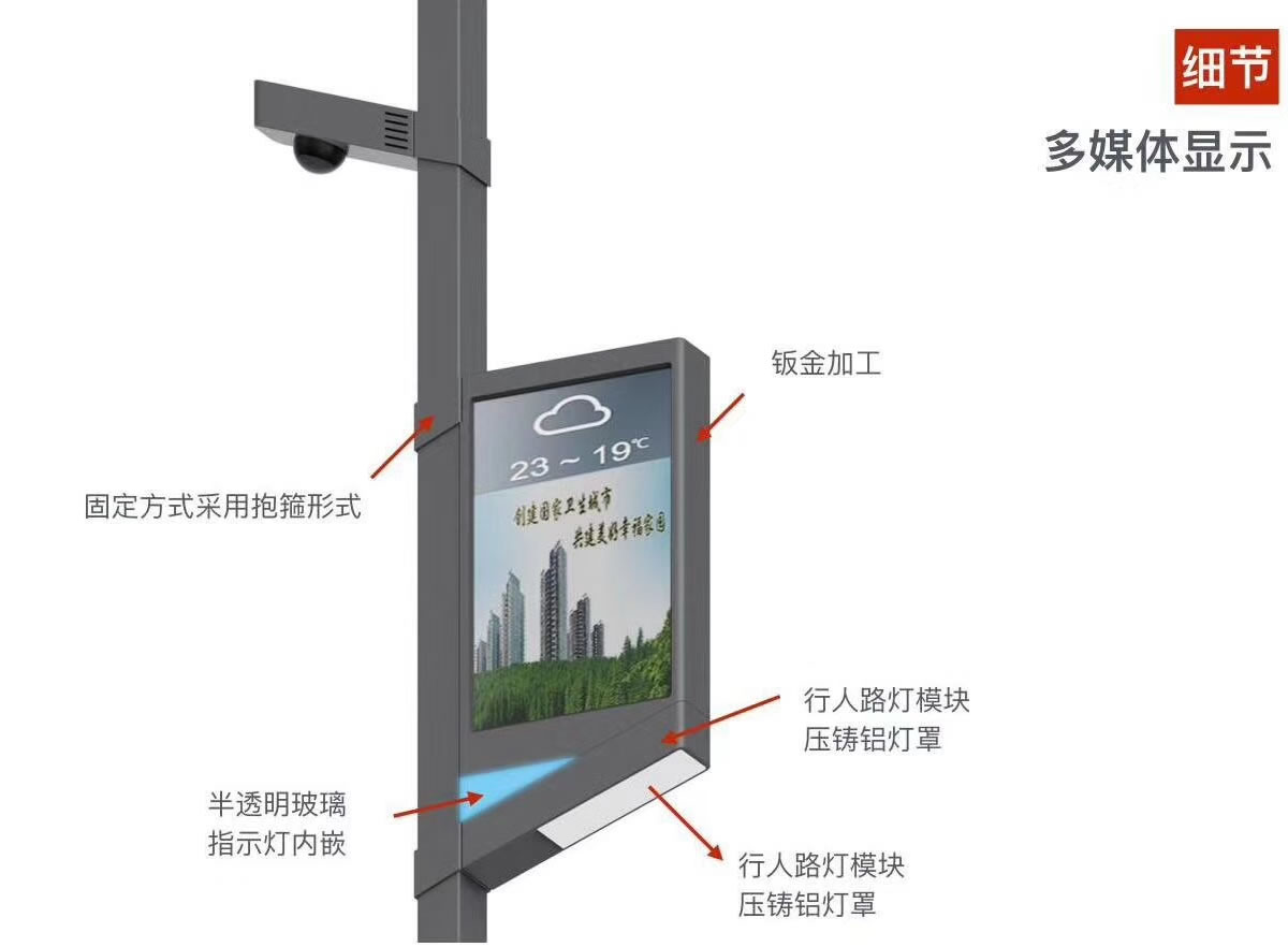 提供多種多媒體信息發布渠道,高分辨雙色或全彩LED或LCD顯示屏,支持從智慧城市軟件平台遠程推送文字、圖片、視頻服務,實時城市信息顯示,包括民眾關心的政策動向、突發事件、交通擁堵、氣象情況以及停車位信息顯示,配合城市應急廣播係統,在緊急疏散和通知等時刻配合顯示屏發布信息。作為市民了解城市的“智慧之窗”。